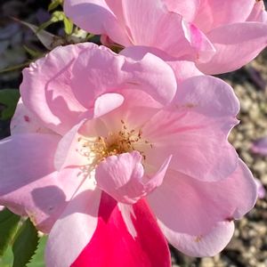 優しいピンクの花びらがふんわりとした感じで咲くバラさん。 所々に濃いピンク色の絞りが入るのがなんとも可愛いです🥰