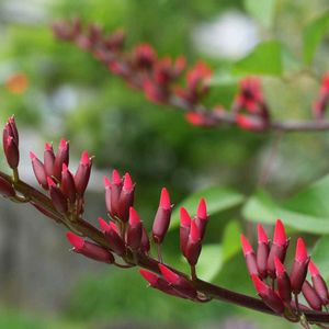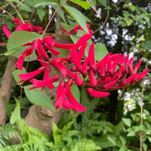 【珊瑚刺桐】《マメ科》 花言葉 「不滅の恋」「夢」「童心」 「優しい気持ち」「活力」 オーストラリアで生まれた 園芸品種で、 アメリカデイゴと ヘルバケアという花を かけ合わせて作られました。