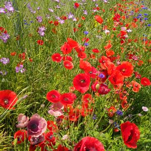 今日の花 ヒナゲシ 毎年この場所でヒナゲシとムギナデシコの競演を見る事ができる。 今は綺麗に刈り取られ、ひまわり🌻の苗が植えられている。 管理されてるのは個人の方。 日当たり、風通りのいい場所で咲く、幸せな花々。