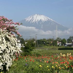 今朝の富士山と小手毬.ポピー.麦撫子.デージー (2025.5.20 6;47〜御殿場市より)