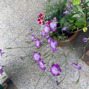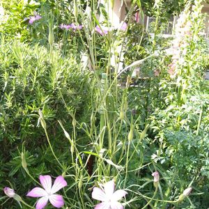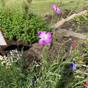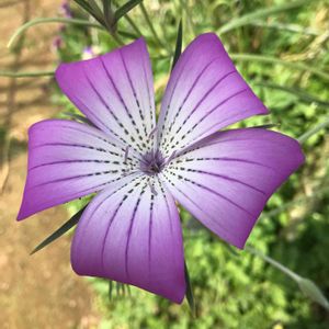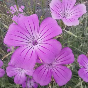 強風で倒れ割れた鉢、そのまま種から育ててていたアグロステンマ(ナデシコ科)、和名ムギナデシコが咲き始めました。ヨーロッパでは麦畑に生える草花として知られているそうです。雑草扱いなのかも😆