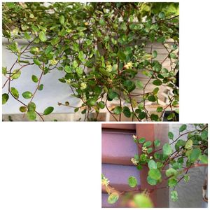 数日前からワイヤープランツの小さな花が咲いています💚 斑入りベビーサンローズは全く咲きません… また伸び伸びになってきたので切るべきか。 以前に切って別で植えた方も咲きません。 気長に待とう!