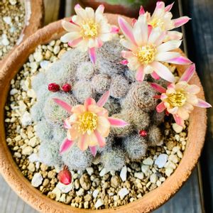 今年も咲きました😊 かわいい😍 それにしても、このサボテンはレブチア?レプチア?マミラリア? 未だによくわからない(^-^; マミラリア属クルシゲラとして売られてたり、レブチア属アルビフローラとして売られてたり。 レブチア属アルビオーサ? マミラリア属ではない気はしてるけど、クルシゲラとして売られてる率が高い。こういう花の付き方はレブチア(レプチア)系だと思うのだけど。 今年も花は咲かせてくれたけど、本体は縮んだ気がする。