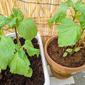 紫蘇 同じ日に植え替えたのですが、普通のプランターとテラコッタでは、土の乾き方にこんなに差があるんですね🙄 どちらが生育良くなるのか実験です… 土の量違うけど…😏