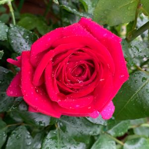 バラのレジスマルコンさんが今季初開花となりました。ピンクみを帯びた赤色と葉の濃いグリーンとのコントラストが美しいです。香りも濃厚です。花付きはまだ2年目なので少ない方ですが、トゲが少ないのは大きな魅力です。