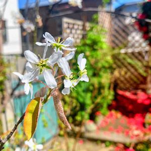 2階の窓からツルゴールドバニーさんと源平ヤマボウシ さんのツーショットです。 開花時期がぴったりです。