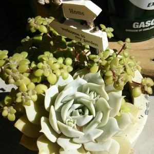 旦那の手作りモルタルハウスに 多肉ちゃん寄せ植え♥