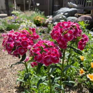 サカタのタネ ミックスフラワーガーデンの種から育てて 美女撫子の次の娘は派手ですね😂 後方の大阪のオバチャンカラーのタイガーアイの影が薄いですね🎵