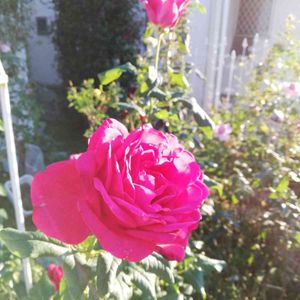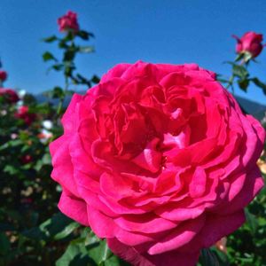 🏷水曜ローズショー 今日は業者が来てバタバタしている内に夕暮れ🤣💦 昨日は知らず知らず900picになっていて、💬くれたりイイネ👍押して下さる花友の皆様のお陰だなぁと改めて感謝🙏 そんな皆様にゲーテローズを🎁 こちらの美しい🌹はドイツの文豪ヨハン・ヴォルフガング・フォン・ゲーテに捧げられたバラ。恋多き文豪にふさわしく、花弁数の多い豪華な花形に、ダマスク~フルーティのロマンテックな甘い香りを持ちます。 株は高性です。すんなり伸びた枝の先に、大型の花を1輪つけます。4輪程になる事もあります。ステムが長いので切花にも向くそうですよ〜😊💞 濃いローズ色に赤色がのった半剣弁ロゼット咲きの大輪バラです。 昔、ゲーテとかハイネの詩集を片手に○○さん愛って何ですか?と突然聞かれた事があって絶句🤭🤭🤭オイオイ高校生の私にそれを聞くのは???😳🤣😅だったっけ😆😆😆💦 話を戻してゲーテローズについて🌹 2011年バガテル国際コンクールThe prize of the children受賞、2011年リヨン国際コンクール フランスバラ協会名誉会長賞・芳香賞受賞。 数々の賞を受賞していますね〜💖見た目もゴージャス香りも◎お勧めですよ〜😘💕