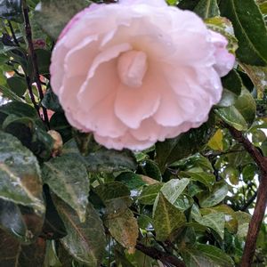 長野県伊那市 かんてんぱぱ ガーデン サザンカ 薄いピンク色のお花 美しいお花でした。