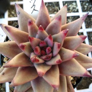 新入りさん♡その① エケベリア・レッドチップ 赤く染まったフチの色、ツンツンした爪、葉の形。。。 ん~、完璧😆