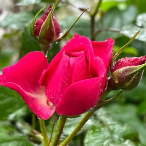 チンチン🌹 フランス 1978年 鮮やかなバラに、朱色花は輝くように発色が良く遠くからでも良く目立ちます。 丸弁高芯咲きの花形はとても優しけで、花持ちが良いのが嬉しいです。 花名は、かんぱいをするときに、グラスをあてる音から名付けられたようです。 本来は、ハイブリッドティに分類されていますが、日本では フロリバンダとして 扱われています。 四季咲き 微香 ちょっと名前が、女性には、呼びにくい バラですになりますことを、お許し下さい!🙇🌹 おはようございます。🌅
