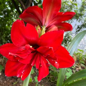 朝の通勤中 椿の木の下にアマリリス発見💡🌺