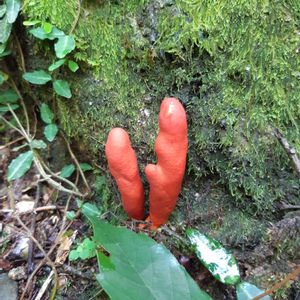 原生林を歩いたらいろんなキノコに遭遇 🌕猛毒きのこ「カエンタケ」 絶対に 食べても触れてもあかんやつです。