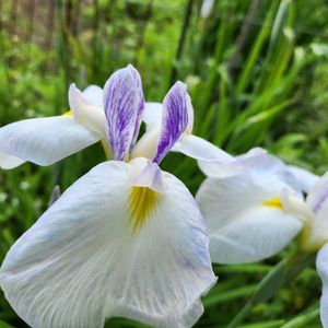二色のハナショウブが咲きました🤍💜 今年は、花数が去年より少ないですが少しでも咲いてくれたので嬉しいです😊