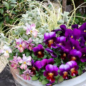 小さな寄植え 絵になるスミレ パルム コンボスブルズ クネオラム バロータ スイートアリッサム