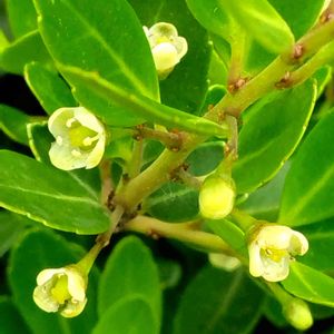 犬柘植🌳 イヌツゲ 郵便局で 🌼🌼5㍉もない細かい花、地味でかわいい🤩 陽当たりよい場所なので季節外れの開花✨✨(о´∀`о)🎶