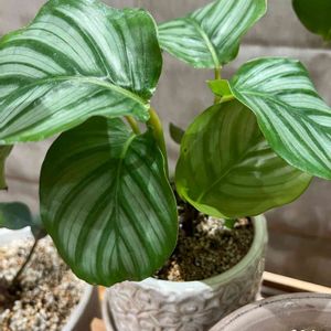 記録用😁 綺麗なお花のpicでなくてすみません😅 春先に弱って養生させていたカラテアさん😅 ストローが2本出て来ました😆❣️💚 綺麗な葉をやっと見れそうです💚🤍💚