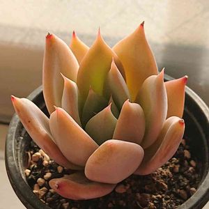 ムーンストーン。 何年か前に買った、初めての韓国苗。 ばっかぁーんと開いて、緑色になって、フェイク多肉の様にプラスチックみたくなって(笑) またにの水やりで、日陰で同じ形のまま、何年も…… 生きていたのが不思議なくらいです。 形を整えたので、今度は可愛くしてあげよう!