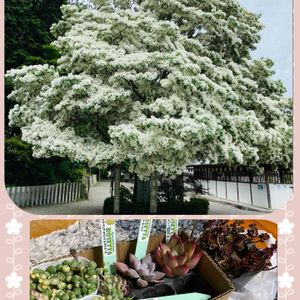 本日のお休みは、毎年訪れている沙沙貴神社の「ナンジャモンジャ」の花を見てきました✨✨ ちょいと時期を逃したかなぁっと心配してましたが…🎉満開🎉 待っててくれましたぁ😊💕💕 帰りにお友達から聞いたShopで多肉をお迎え✨ 念願の班入りグリネ🟢✨🟢✨ ギリギリ買えました(⌯˃̶᷄ ⁻̫ ˂̶᷄⌯)♡