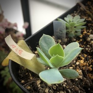 先程思い出しました😂 今日は初おらいさん苗 “夕波”をお迎えしてから1年記念でした👏 もりもり増やす管理のやり方もあったんだろうな~と、お迎え当時に思いを馳せつつ 子株ができる事もなく、ちょっと歪で瘡蓋が何とも強者のようなお姿に成長🫣 これからも元気でいてね✨