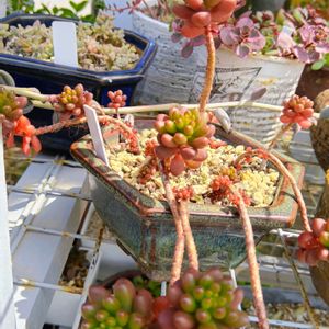 昨年4月に投稿した時は、宝石箱みたい💎と褒めて貰った葉挿しっ子達も🌱 あれから一年… セダムと強い子が占領してしまいました💦 まあ、これはこれで可愛いけど🩷😅