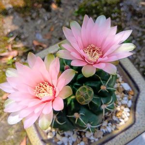 オブツーサ🌱雫石 2本の花芽から、お花が咲き始めました💠✨ ③ 昨日は☔️ 今日は曇り空☁ 🌵さん、2日目も中途半端な開花で終わりました💧 残念です😥 明日に期待します✨🩷✨