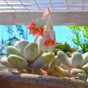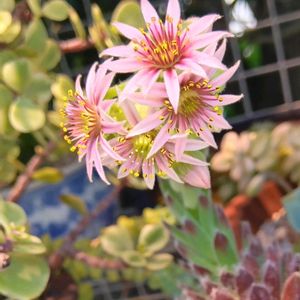 多肉を見に出ただけで汗びっしょりです🥵 🌱センペルビウム、一つだけ花が咲きました🩷 久々に見る事できて嬉しい~💠😊💓 明日から7月🎋 夏はこれからですね〰️☀🥵