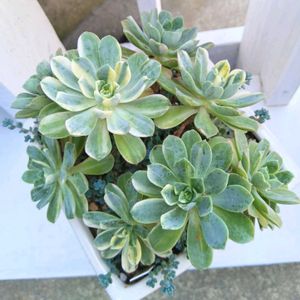 アエオニウム属🌱愛染錦🩵✨ 1月にUPしてから随分成長しました 連日の夏日☀🥵 愛染錦さんの涼し気な色いいですね🩵😊🍧