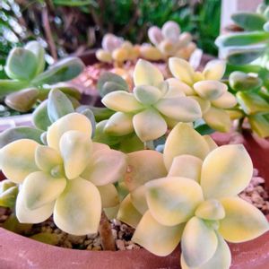 先日の雨に続き、今晩夜中から明日にまた大雨の予報が出ています☔ 多肉たち🌱大丈夫かな😞 夏は車庫の中が暑いので、入れられないんです💧 1枚目 ティチュパンス錦 2枚目 紅葉祭り 3枚目 何だと思いますか?😊 3枚目は 根腐りした🌱デザートローズの元気な茎だけをカット✂️して、置いていたら、沢山のチビっ子達が現れました🌱✨ そっと外して植替えたいと思います 上手く育つといいんだけど😆💦