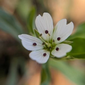 今日、1つめの投稿です。 ①〜⑤ ワダソウ 小宮公園では4月初旬、ワダソウが咲きます。 花弁の先にV字に切れ込みがある、小さく可愛い花✌ 花弁は基本5枚。 この日は4枚のものも発見しました。 雄しべは10本。 外側に5本、内側に5本、と分かれてるように見えます。 内側のほうの葯が先に花粉を出す仕組みなのかな? 明日にでも咲きそうな蕾もありました。 この日は、私と同じく宝探しに来ている人、2人と出会いました☺ 4月9日 小宮公園