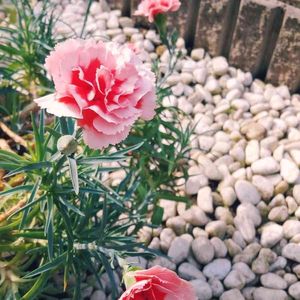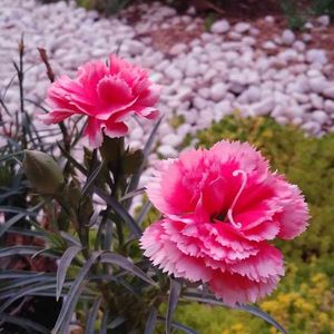 2年目のカーネーション 去年貰ったカーネーション 沢山花が咲いてきた 木の根本が寝っ転がってるので形が変です