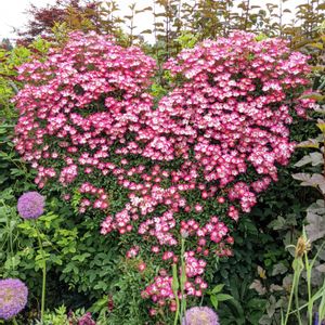 アリウム・ギガンチウム でしょうか😃 ちっちゃな花が集まって可愛い💕 昨日の❤型のバラの下のほうの 紫の丸のアップです🤗 5/28の🏷つぶつぶの日に ツボミの写真もあるので、 よかったら見てくださいね🎶