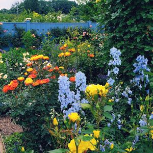 中之条ガーデンズのローズガーデンは、薔薇🌹だけでなく、一緒に植えてある植物にも魅了されました。😍 黄色やオレンジ色に青系のお花🎵 綺麗なコントラストにうっとりです❣️🥰 頑張ろう❗日本‼️ 👊✨