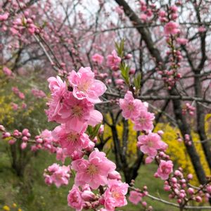 『花桃の丘まつり』開催中の 中之条ガーデンズに行ってきました🌸 県北の中之条は、梅がようやく散り、 モクレンが咲き出したところ。 pic1 レンギョウは満開でしたが、 花桃は4,5分咲き。 ユキヤナギは咲き始め。 あと10日くらいすると 三色の競演が見られそうです🥰 pic2,3 バラのコーナーには ヒヤシンスの良い香りが😍 pic4 珍しいアプリコット色のヒヤシンス。 黒竜を合わせるところがニクイ😆💕 ナマケモノガーデンズから ナマケモノが居なくなり、 『多肉植物ガーデンズ』に なってました🥲 pic5 ガーデンの案内 この週末にはライトアップも予定 されてますが、おまつりは 延長されることになったみたいです😊