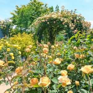 読み聞かせのためにお休みもらって ついでに 中之条ガーデンズ行って来ました🌹 前橋市内ではバラまだ咲いてますが、 県北の山あいの中之条はようやく 二分咲きくらい。 これが咲いたら見事だろうなぁ😍 と期待に胸膨らむ蕾の数々… 見頃にはあと10日ほどでしょうか😊 それでも早咲きが集まる 黄色のコーナーは充分見ごたえが ありました❣️ pic1 黄色のコーナー ここは天国ですか…👼💕 pic2 同じく ベンチの脇の黄色は 『ヘンリー・フォンダ』という品種 遠くからでも分かる 迷いのない黄色一色💛 香りも素晴らしいのです🥰 pic3 同じく 青い背景に絞りのバラ! 周りに明るい葉色の花木を配して pic4 紫とオレンジの補色のコーナー ここのベンチで持参した ポットのコーヒーをいただくのが 至福のひととき💕 pic5 大好きなシェードガーデン 有名な額縁のコーナーの 背後にあって、皆さん行き過ぎるけど モノトーンの中に斑入り植物を 集めて、とてもオシャレ🤭💕 また年パス買っちゃいました🌹 6月は梅仕事と球根の掘り上げとか 忙しいけど、また時間を作って 行きたいなぁ🥰