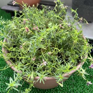 割ってしまったお気に入りの鉢 捨てるのは忍びない…ということで、ブロークンポットにしてみました🪴 挿し芽したコルシカミントが… いつの間にかワッサワッサ𐤔𐤔𐤔 下部のカリシアも根付いたかな? 見た目はベビーティアーズに似ている、ミント界最小のコルシカミント 暑さと蒸れに弱いため、挿し芽や株分けで毎年更新ꔛ🍀 見落としそうなくらい小さいお花も咲いています.* ⚘ ③モノプシス*ブロンズビューティ* ずっと欲しかったモノプシス、やっと出会えました·͜·ᰔᩚ ④種が出来始めたオンファロデス おヘソ(*´艸`) 花は少なくなれど、緑が輝く季節です.*・゚