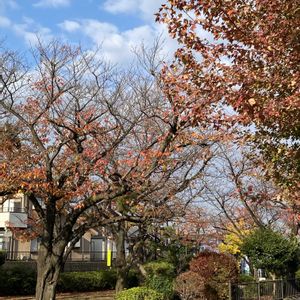 おはようございます💐 今朝の散歩道から見た景色です♪ 秋らしい鱗雲に桜やトウカエデの紅葉🍁が映えますねー♪🎶