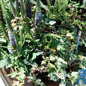 見るとどうしても買ってしまう ペンステモン 今年も見つけてしまいました✨ 淡い紫と青のグラデーションが とっても魅力で 同色のスカビオサと 斑入りノブドウと ダイヤモンドスノーと ペチュニアで 淡い色合いの寄せ植えを 作りました♡ ノブドウが涼しさを 作ってくれてて 夏に爽やかな感じに…