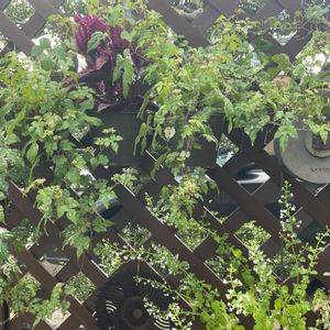 斑入りノブドウ 木製トレリスの高いところに巻き付いています。 斑入りが綺麗! 昨年実がなるのを楽しみにしていましたが、期待はずれでした。 今年はどうかな?