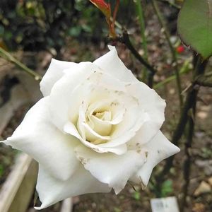 ノスタルジー・ハイブリットティーローズ(四季咲大輪)です☺️ こちらも土曜日にお迎えして、ポットから鉢に植え替えました😊 薔薇🌹の大苗が色々入荷したてで、花が付いてないのが殆どで、(ブランド物は花が付いてるのもありました😊)どれにしよいか迷いました😅🤔 タグの写真と説明で、このノスタルジーに決めました❗️😊 まだ枝だけの状態ですが、少し芽が出始めてます🤗 タグの写真の様に咲いてくれるのが待ち遠しです😍🤗