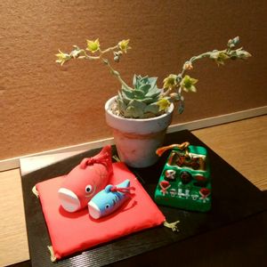端午の節句 うちの鯉のぼりは土鈴です🎏 菖蒲もないから 紫のビオラとヒューケラの花で😁