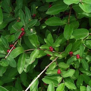 キンギンボク(ヒョウタンボク) スイカズラ科スイカズラ属 果実が赤く熟してます💓 確かに2個くっつくと瓢箪みたいやね〜🤭 昔から「ドクブツ」とか「ヨメコロシ」とか別名があるようで…猛毒です😱ベツメイガコワイ💦