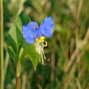 ツユクサ ツユクサ科ツユクサ属 花弁は3個あり、下方の1個は白くて小さく、上側方の2個は青く大きくて目立ちます💙 雄蕊は6個あり、そのうちの2個が完全雄蕊で花柱とともに突出します。残りの4個(黄色)は仮雄蕊で、3個は短く十字形(X形)で花粉が少し出るか不稔。もう1個(中間の長さ)は逆V字形(Y字形)で少しだけ花粉を出します。φ(..)メモメモ 仮雄蕊の方が黄色く目立っているって、個人的には不思議ちゃんです🙄😊