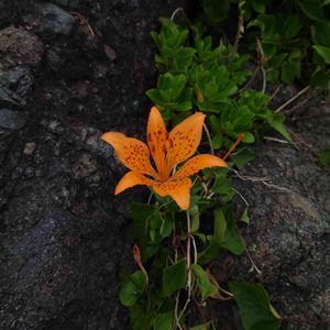 岩場で立派に花開いています。 鮮やかな橙色に魅入ってしまいました💛 スカシ。。とはこれまさに😊✨