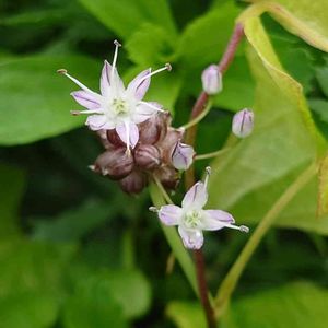 ヒメヤブラン キジカクシ科ヤブラン属 高さ10~15cmで直立し、葉より短い(低い)。花茎(3~12cm)は少し扁平で狭い翼があり、先端に淡青紫色の小さな花を総状に5〜12個(解説によっては3〜17個…)横向きにつける。 *花色は淡い紫〜ピンクでいいかと☺️👌 写真から少しでも分かるといいのですが、雄蕊(6本)は一方向(重力の方向かなぁ)に寄り、雌蕊はそれを避けるように伸びます🤭オモシロイ🙌 淡青紫色、皆さんは何と読まれますか??🙄 変換候補に「男性試食」と出ました(笑)😂😁