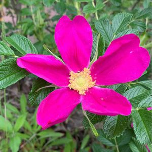 きょうのおはな🌸🍃 種差海岸一帯に5月から見られる鮮やかなお花で、こちらの地域では身近に感じます。 また、娘が9年間通った学校の校歌にも出てくるため、口ずさんでしまいます♪♪♪ ヽ(・ˇ▽ˇ・ゞ)〜 ♪ハマナスの花 咲く野辺に〜 このpicは近くの美容院のそばの遊歩道で。