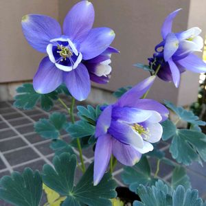デッキの植木鉢のオダマキの 新芽新葉が2つになりました 春にはこんな華やかなお花が 無事咲いてくれるかしら?
