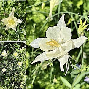 オダマキ(苧環)各種 ①清楚な佇まいの白花さん🤍 昨年から現れました。 今年は1箇所のみの開花でしたが待っていたお花が見られました😍 ②風鈴オダマキ 絞り咲きは零れ種から🌸 ③ヤマオダマキ 上 畑 下 庭 色合いが違う子が👀 ④西洋オダマキでしょうか🤔 以前咲き始めをupしましたが今満開で咲いています💓 背丈も高く見応えがあります。 ⑤西洋オダマキ 植えた覚えのない子ですが、こんな可愛らしい子が✨