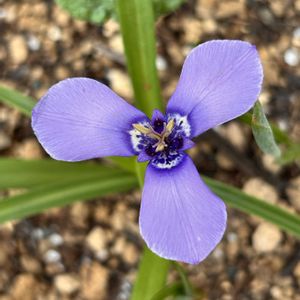 💜💙晩春~初夏に咲く花💙💜 ①②チリアヤメ アヤメ科 花は朝開いて夕方にはしぼむ 一日花(径3cm)家の鉢植え🪴 3枚の丸みのある花弁(外花被)が 広がり プロペラのように見える。 中心部には濃淡の模様が入り 3枚の小さな花弁(内花被)がある ③④苧環(おだまき) キンポウゲ科 花弁に見える部分はガクです ⑤立浪草(たつなみそう) シソ科